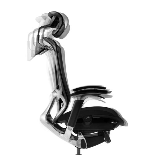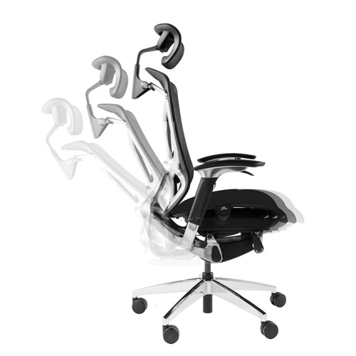 BEZPIECZNE POCHYLENIE OPARCIA DO 56° System synchronicznego wysuwania siedziska został stworzony tak aby w momencie odchylania oparcia przesuwać jednocześnie siedzisko do przodu w celu równomiernego rozłożenia obciążenia na bazę krzesła. Dzięki takiemu rozwiązaniu oparcie krzesła może zostać odchylone aż o 56 stopni w bezpieczny i komfortowy sposób.
