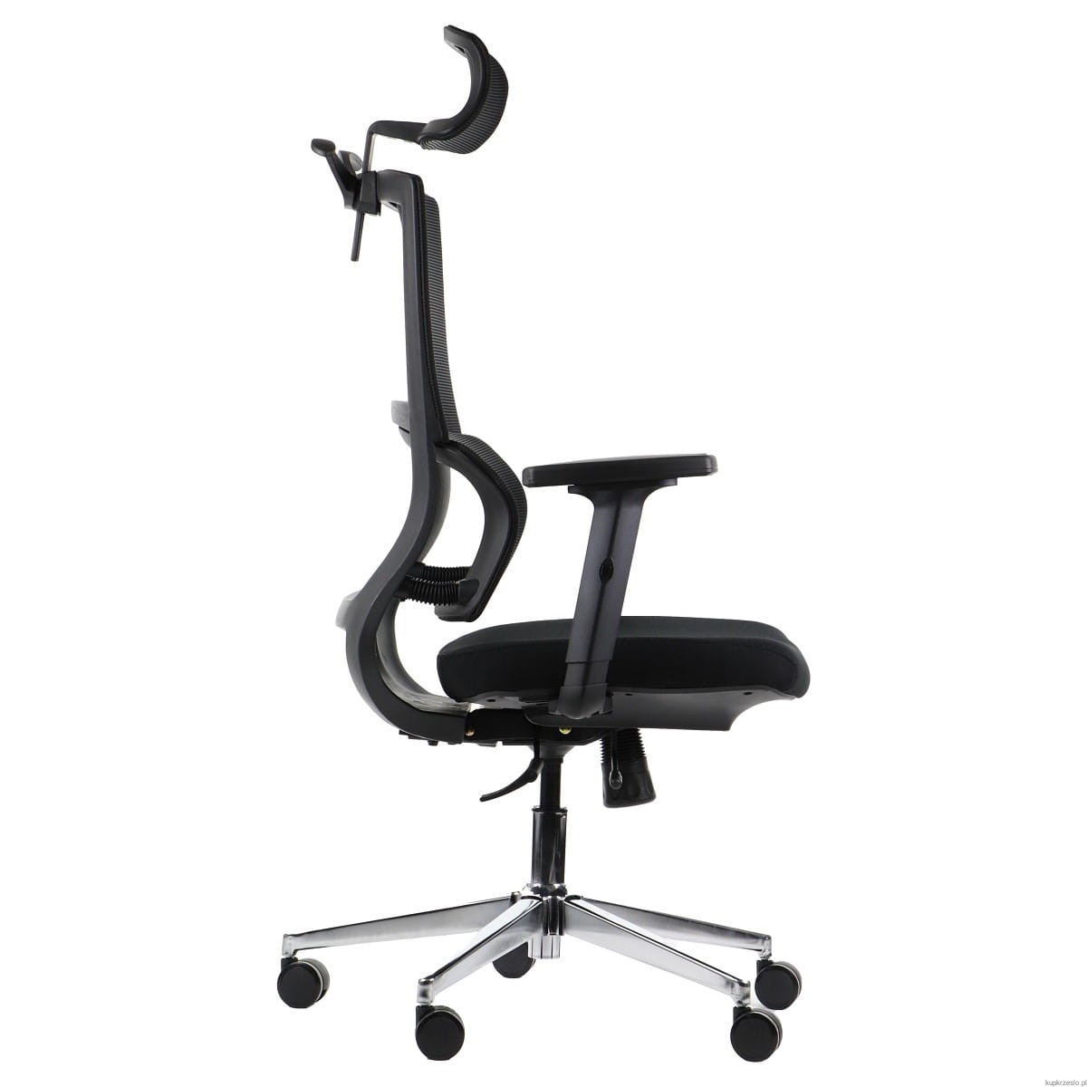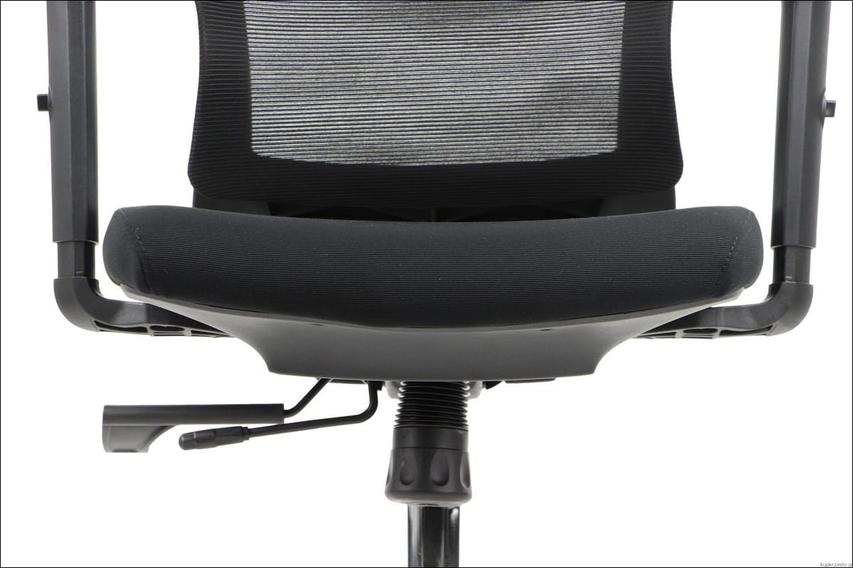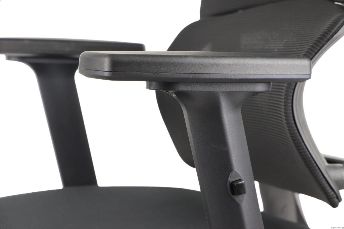Podłokietniki – Krzesło wyposażone w ergonomiczne podłokietniki, które wspierają ramiona, pomagając utrzymać naturalną postawę ciała i redukując napięcie w obręczy barkowej.