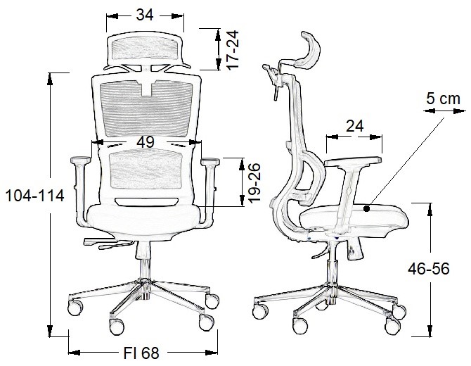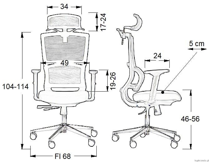 Regulacja wysokości – Dzięki mechanizmowi pozwalającemu na regulację wysokości siedziska, krzesło Trent łatwo dopasowuje się do indywidualnych potrzeb użytkownika, zapewniając optymalne wsparcie dla pleców i nóg.