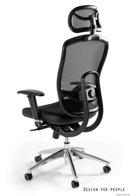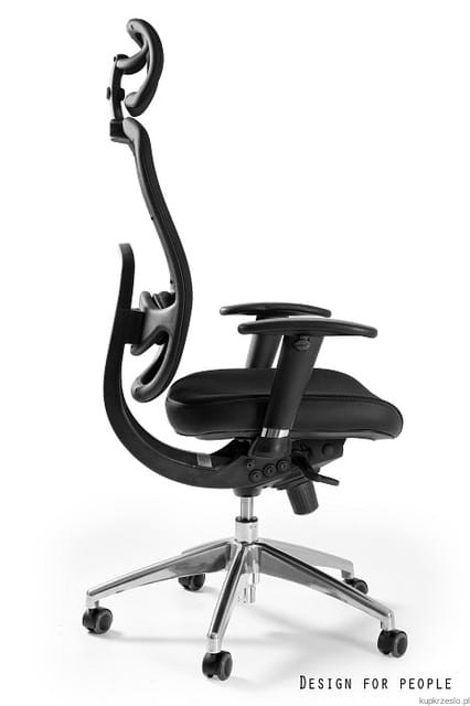 - Polerowana aluminium podstawa – elegancka, polerowana podstawa z aluminium gwarantuje stabilność i nowoczesny wygląd fotela, dodając mu profesjonalnego charakteru.