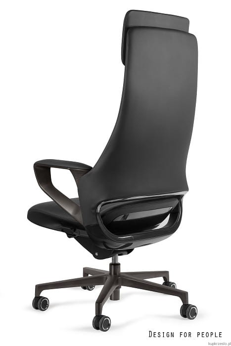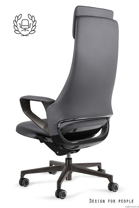 - Tapicerka ze skóry naturalnej – zarówno zagłówek, oparcie, jak i siedzisko fotela są tapicerowane skórą naturalną, co nadaje fotelowi luksusowy wygląd i zapewnia wygodę. Tył oparcia, spód i boki siedziska zostały pokryte ekoskórą PU, co sprawia, że fotel jest bardziej przystępny cenowo, nie rezygnując przy tym z elegancji i trwałości.
