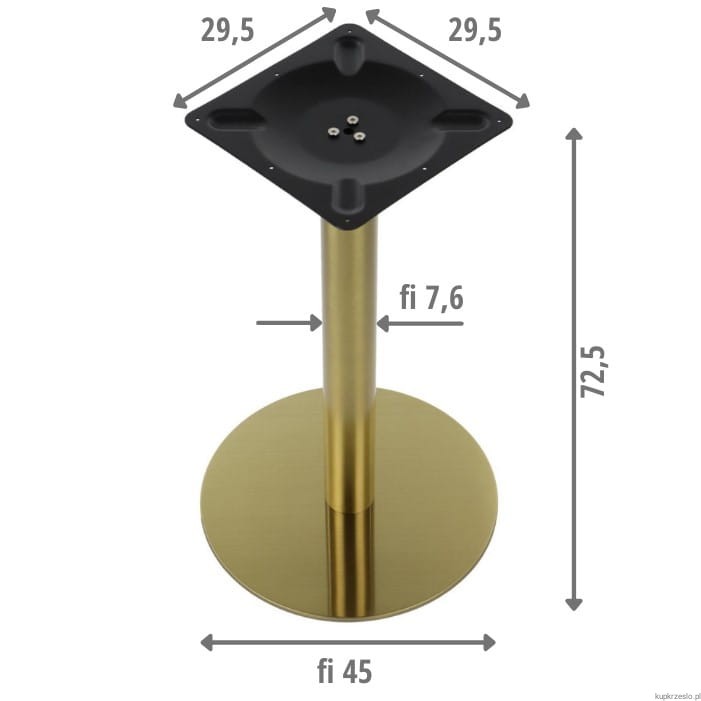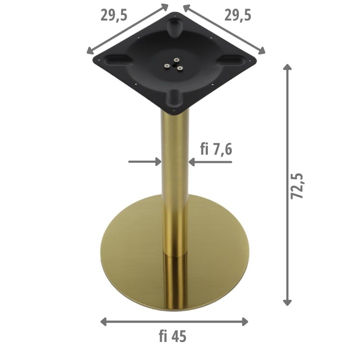 - noga o średnicy 76 mm wykonana ze stali nierdzewnej w kolorze złotym, grubość ścianki 1,2 mm