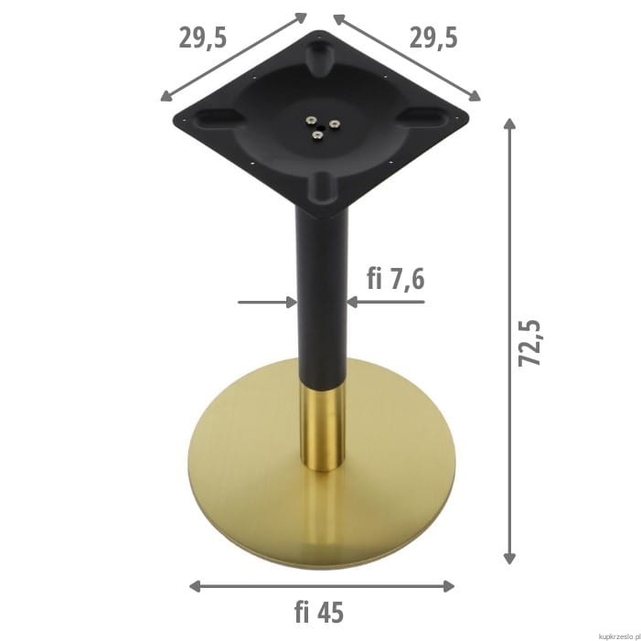 - noga o średnicy 76 mm wykonana ze stali nierdzewnej w kolorze złotym połączonej ze stalą w kolorze czarnym, grubość ścianki 1,2 mm