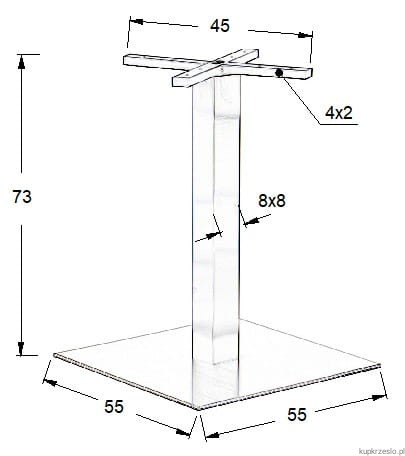 - noga o przekroju 80x80 mm wykonana ze stali nierdzewnej szczotkowanej, grubość ścianki 1,2 mm