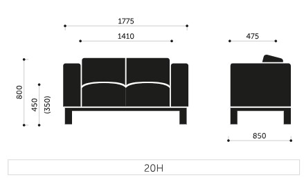 Model Decenta 20H to wygodna i nowoczesna sofa osadzona na metalowym stelażu wykonanym z prostokątnych profili 40 × 20 mm oraz owalnych nóg 70 × 40 mm o grubości 2 mm. Wysokość nóg wynosi 200 mm, co dodatkowo podkreśla lekkość bryły i ułatwia utrzymanie czystości pod meblem. Sofa została zaprojektowana z myślą o przestrzeniach takich jak poczekalnie, hotele, restauracje, recepcje urzędów oraz banków.